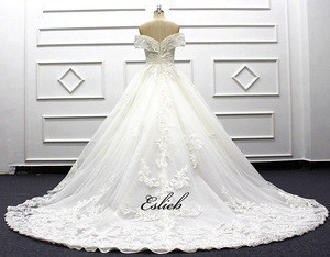 Amazing Pearls Wedding Dress Princess Off The Shoulder Zipper Back Wedding Dress With Zipper Back