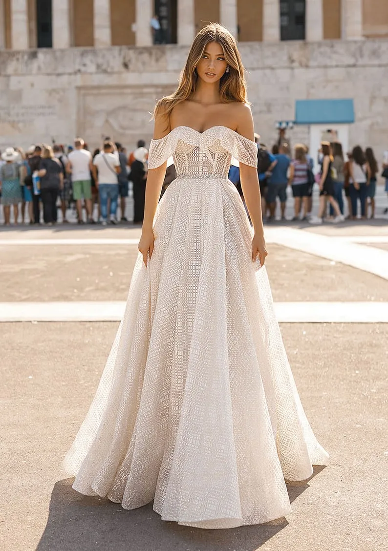 Real Photo Berta Sweetheart Neck Shiny Lace Wedding Dress For Wedding Dress Wrap