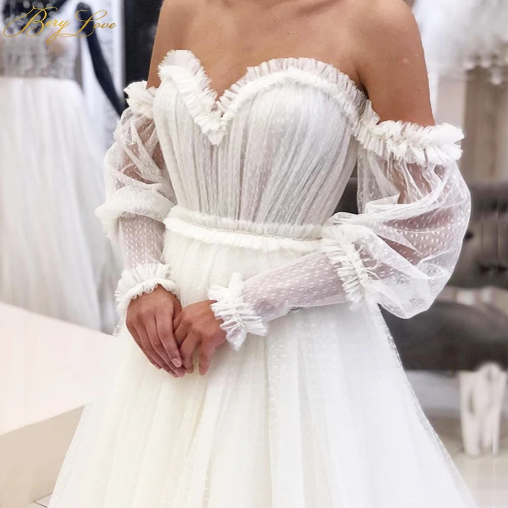 Plain Ivory Dot Tulle Wedding Dresses Off The Shoulder Long Wedding Dresses Aliexpress