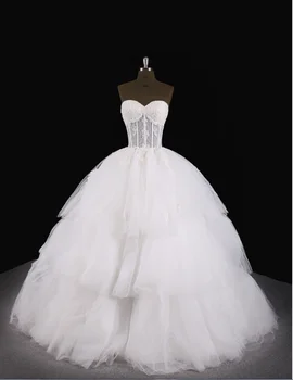 Sweetheart Neckline Ivory Lace Tulle Uneven Full Length Wedding Wedding Dresses Ball Gown Sweetheart Neckline