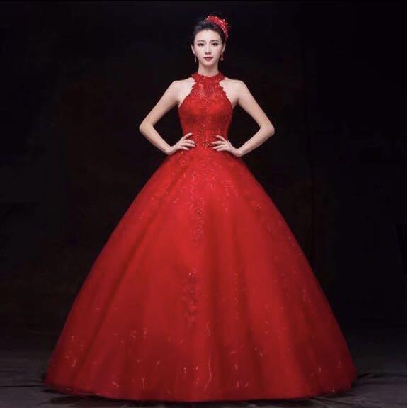 Wedding Gown Red Pretty Ballroom Dress Women S Fashion Clothes Others On Carousell Wedding Dresses Ballroom
