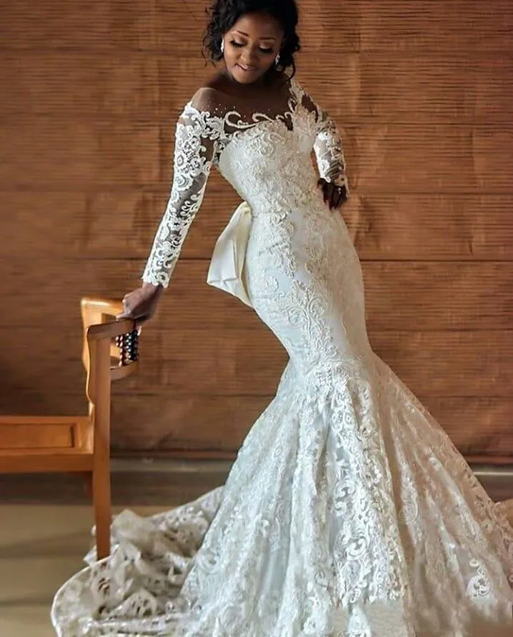 Modest African Mermaid Lace Wedding Dress 2020 Vestido De Noiva Black Girl Women Wedding Gowns Long Sleeve Bride Wedding Dresses Black Girl