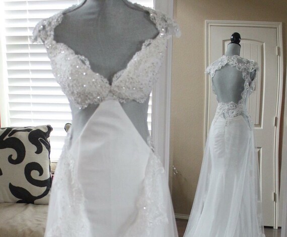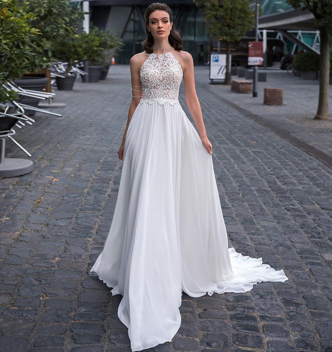 V Neckline Lace Embroidered A Line Wedding Dress With Illusion Wedding Dresses Chiffon Skirt