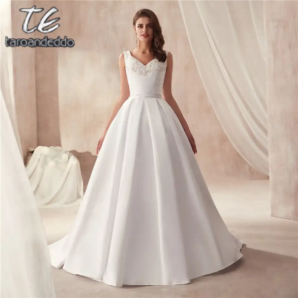 V Neck Two Pieces Matte Satin Famous Design Wedding Dress With Wedding Dresses Famous