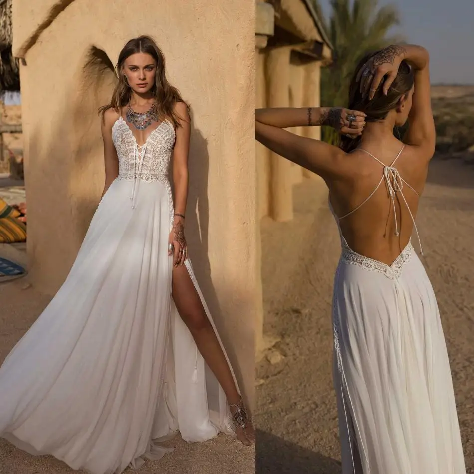 Simple Open Back With Lace Appliques Floor Length Wedding Dresses Wedding Dresses Floor Length