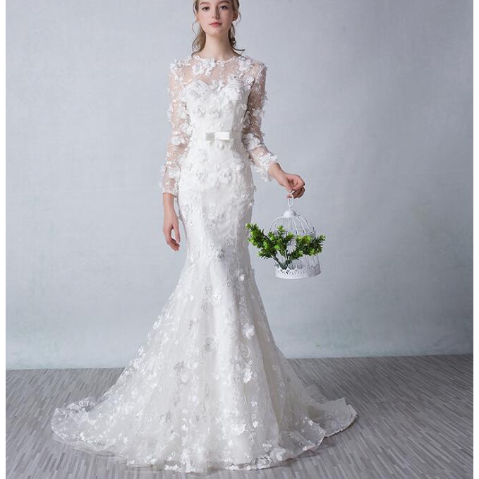 Fishtail Wedding Dress 2020 New Long Sleeve Skinny Bride Slim Fit Wedding Dresses For Skinny Brides