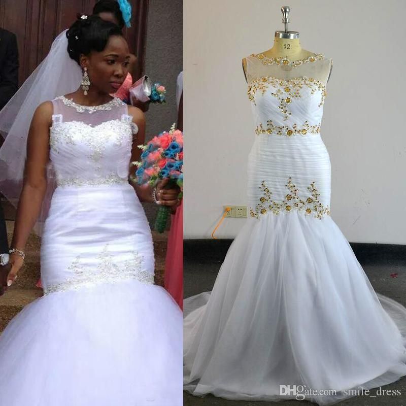 Sexy Sweetheart White And Gold Lace Mermaid Wedding Dress 2018 Wedding Dresses Gold And White