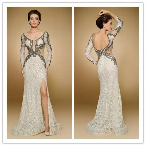 Open Back See Through Vestido De Madrinha Sexy Beach Vestido De Festa Longo Long Sleeves Mother Of The Bride Lace Wedding Dresses In Ma