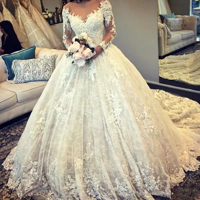Traditional Lace Beaded Ball Gown Wedding Dress With Long Wedding Dresses Long Sleeve Ball Gown