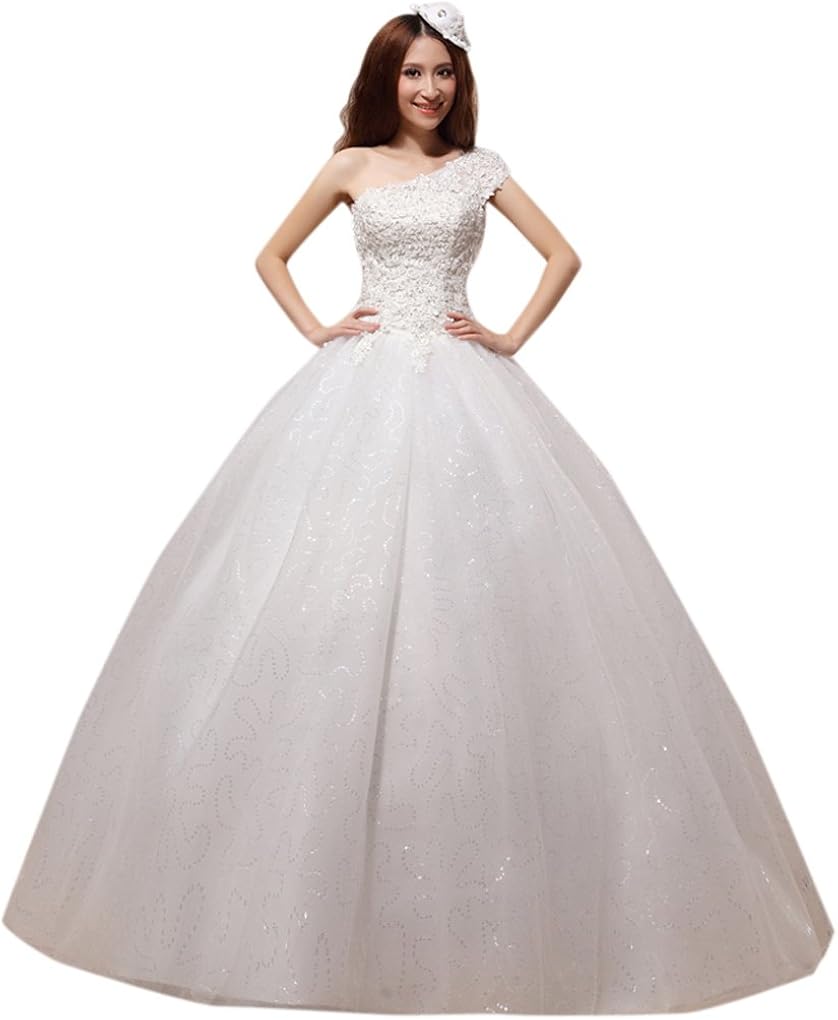 Dearta Women S Ball Gown One Shoulder Floor Length Tulle Wedding Wedding Dresses One Shoulder Style
