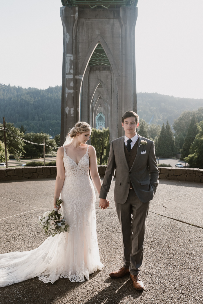 Sun Kissed Cathedral Park Wedding In Portland Or Junebug Weddings Wedding Dresses Portland Or