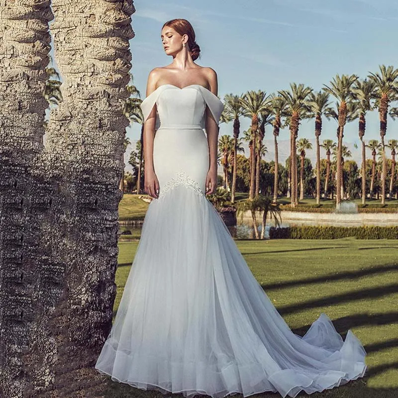 Trumpet Mermaid Tulle Applique V Neck Sleeveless Sweep Brush Train Wedding Dresses Trumpet Mermaid