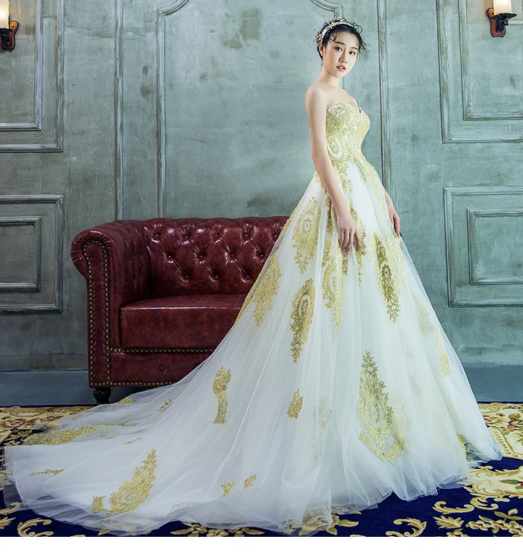 Hot Sale 2018 Luxury Indian Wedding Dresses White Gold Applique Wedding Dresses White And Green