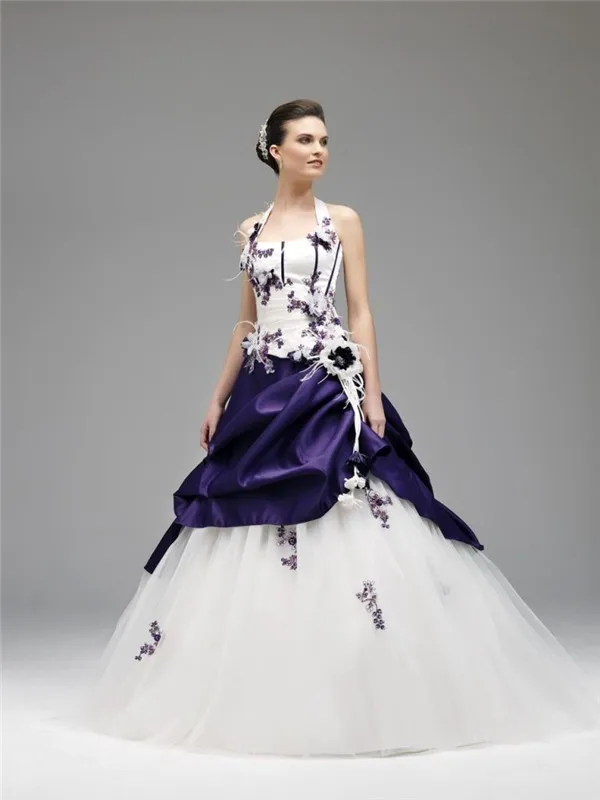 Beautiful White Long Felted Wedding Dress With Purple Details Wedding Dresses White And Purple