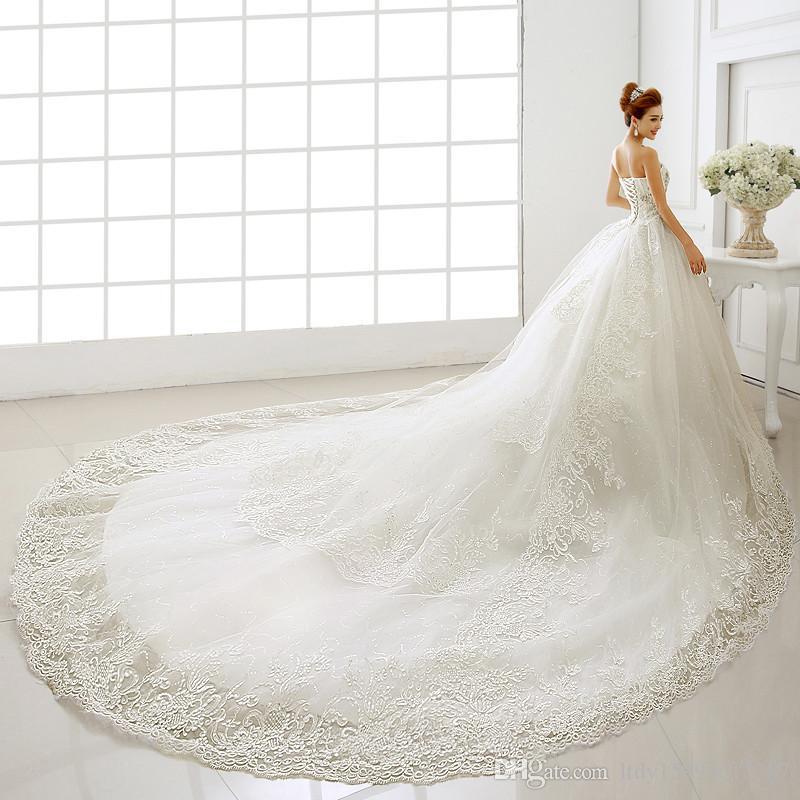 Discount 2019 New Sweetheart Sleeveless Floor Length Long Wedding Wedding Dresses With Cathedral Length Train