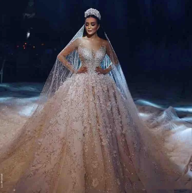 Luxury Long Sleeves Ball Gown Wedding Dresses Crystal Beaded 3d Floral Appliqued Saudi Arabia Lace Bridal Gowns 2019 Plus Size Wedding Dresses Aliexpress Wedding Dresses With Crystals Beading