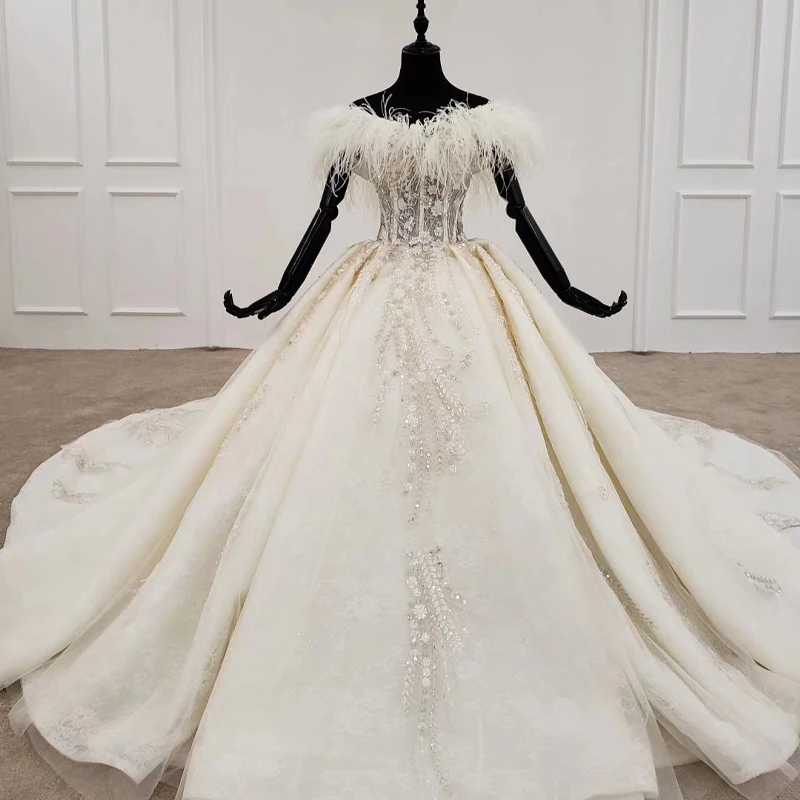 Bgw 21930ht Princess Wedding Dress 2020 Fur Collar Sew Bead Lace Wedding Dresses With Fur