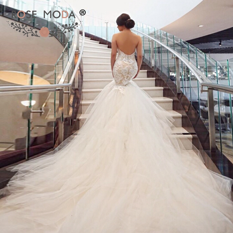 A Line Lace Wedding Dress Sexy Backless Sweep Train Wedding Bridal Wedding Dresses With Huge Trains