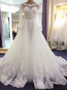 Elegant Heavy Crystal Beading Back With Removable Train Satin Wedding Dresses With Removable Train