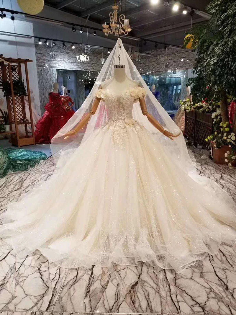 Lss464 Princess Ball Gown Wedding Dresses With Bridal Veil 3d Rose Flowers Off Shoulder Lace Wedding Gown Vestido De Novia 11 11 Aliexpress Wedding Dresses With Roses Detail