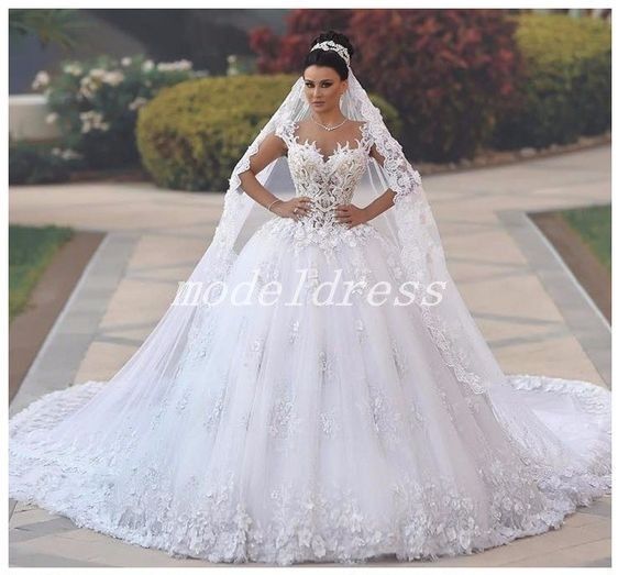 Sheer Bodice Long Sleeve Wedding Dresses Lace Applique Tulle Wedding Dresses With Sheer Bodice