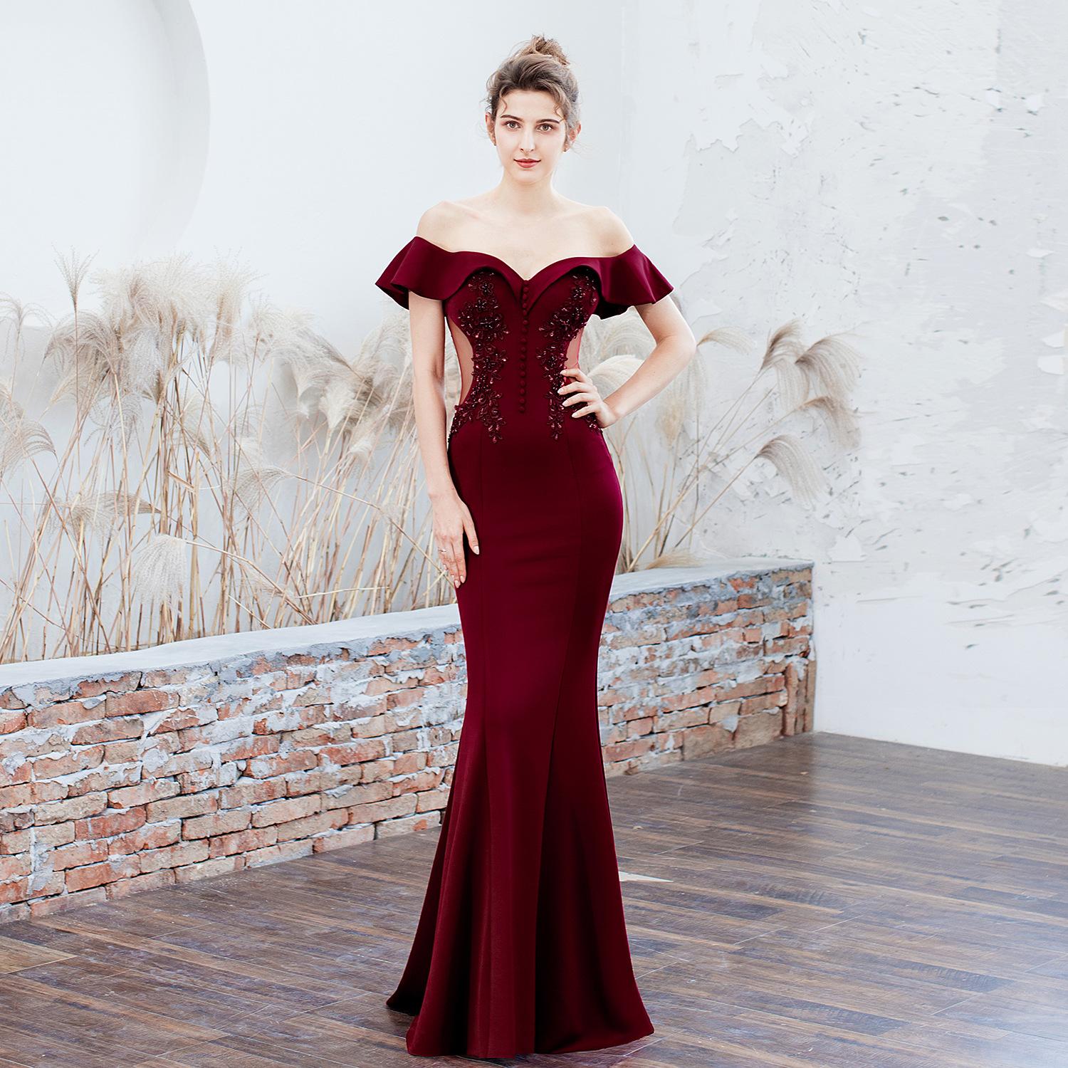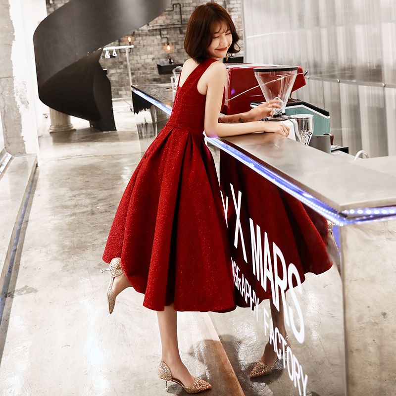 Bride Toast Dress 2020 New Summer One Word Sexy Wine Red Front Wedding Evening Dresses Bride