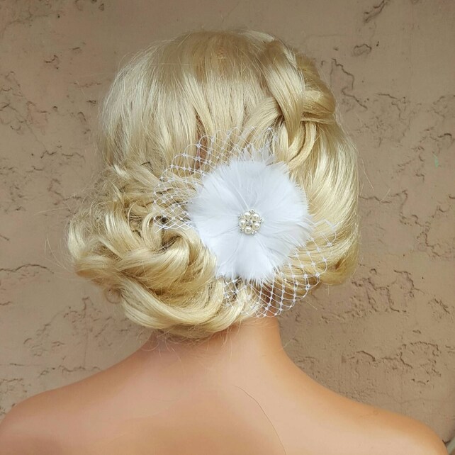 Women Elegant Fascinator Hat Bridal Feather Hair Clip Accessories Wedding Feather Hair Accessories