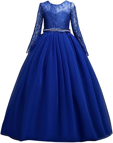 Amazon Com Girls Tulle Flower Lace Wedding Bridesmaid Dress Long Wedding Floor Length Wedding Long Dresses For Girls