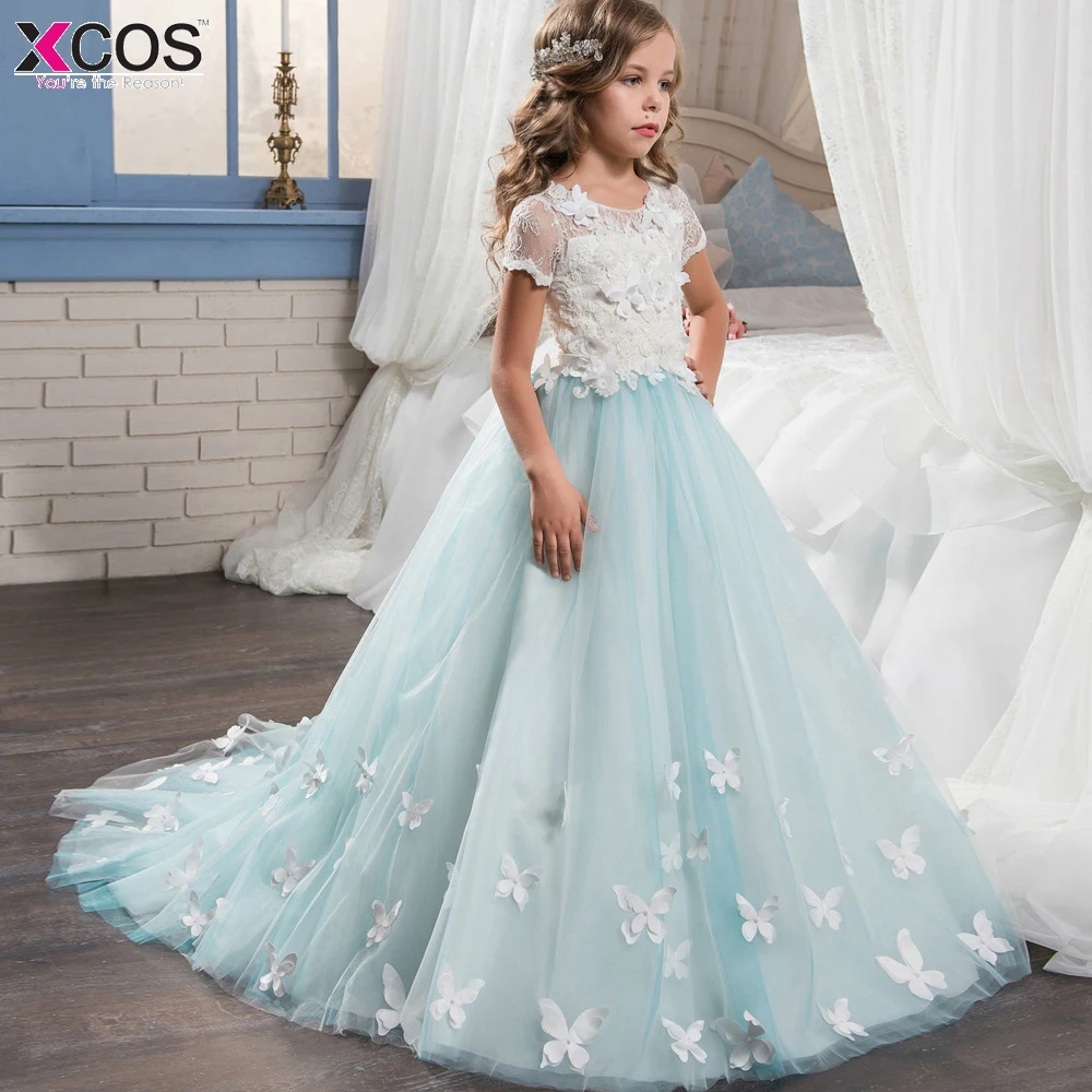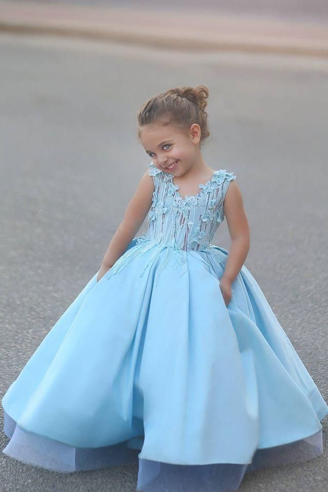 Baby Blue Satin Flower Girl Dresses For Weddings Full Length Wedding Flower Girl Dresses Baby Blue