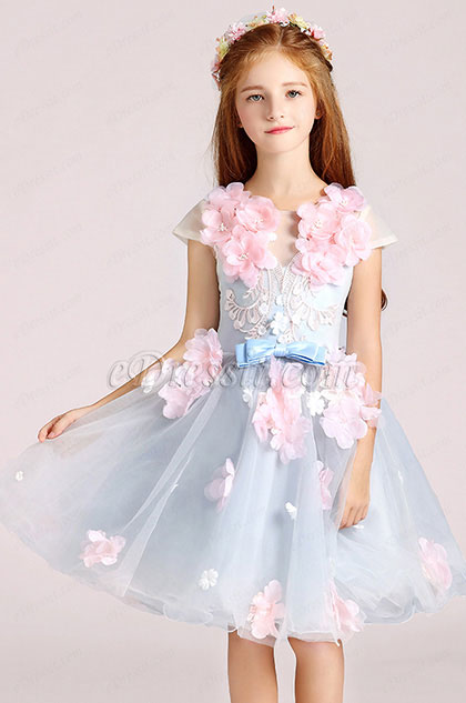 Edressit Light Blue Cute Handmade Wedding Flower Girl Party Wedding Flower Girl Dresses Light Blue