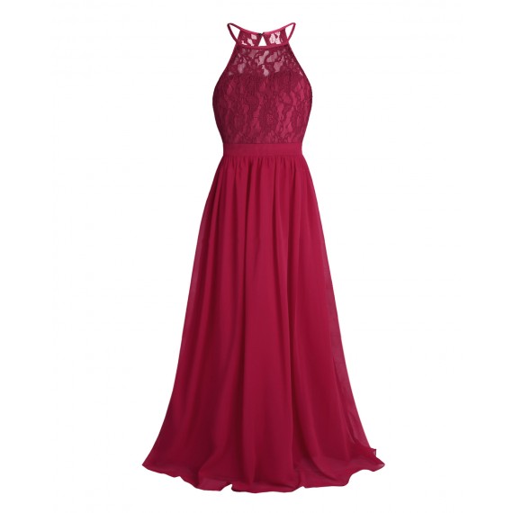 Burgundy Girls Lace Chiffon Sleeveless Halter Flower Girl Dress Wedding Flower Girl Dresses Maroon