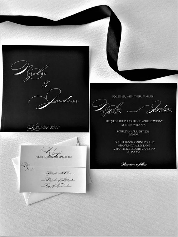 11b Laser Engraved Gloss Black Acrylic Wedding Invitation Wedding Invitation Black