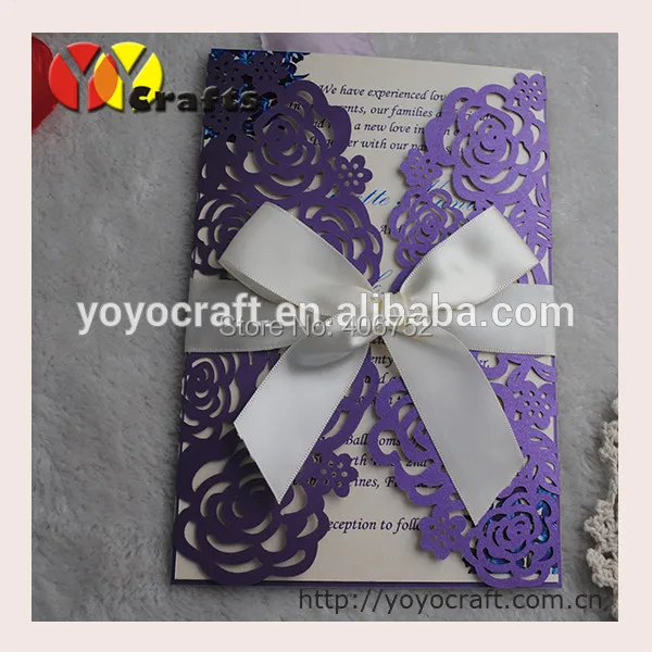 50sets Purple Wedding Invitation Cards Laser Cut Flower Wedding Individual Invitation Cards With Ribbon And Buckle As Option Card Flowers Card Invitationflower Cards Aliexpress Wedding Invitation Card With Ribbon