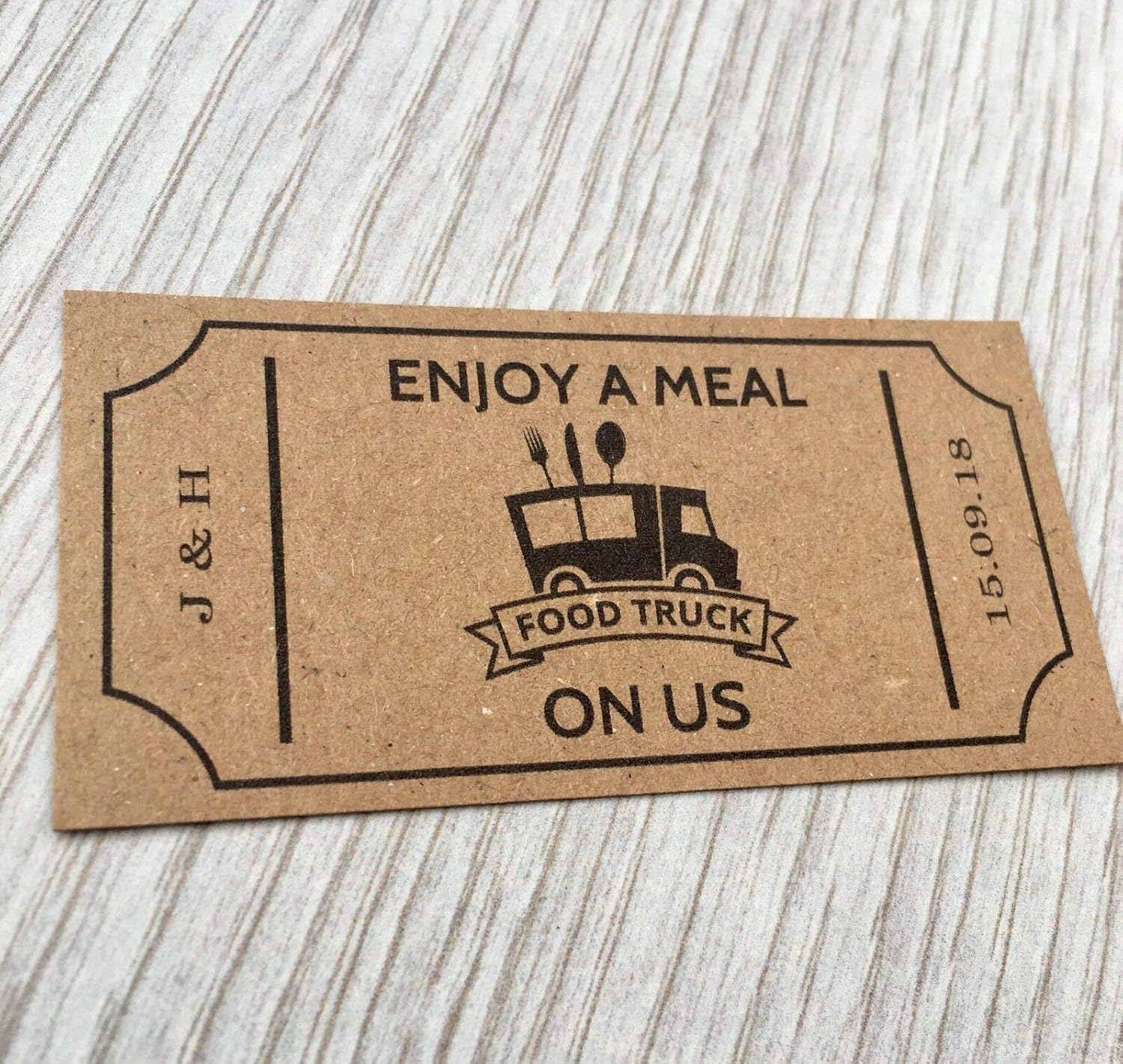 Food Truck Tickets Wedding Personalised 100 Kraft Card Coupons Wedding Invitation Coupons