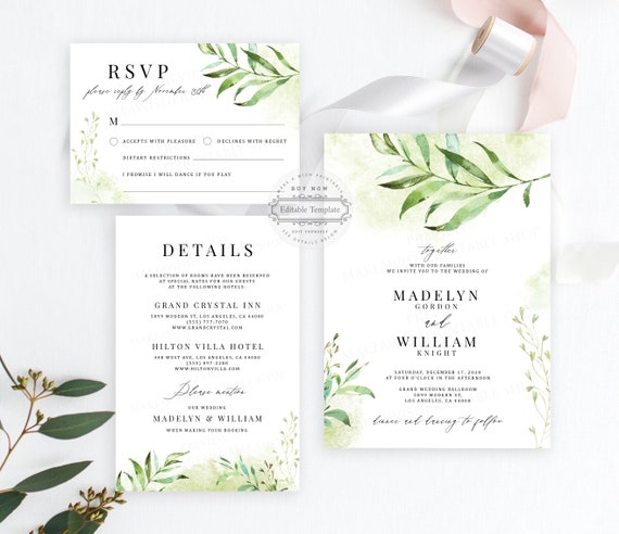 Rustic Wedding Invitation Set Wreath Wedding Invite Template Wedding Invitation Editable Templates