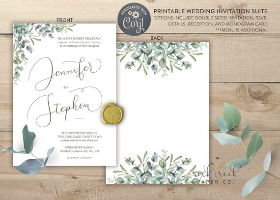 Metallic Gold Love Printable Wedding Invitations Kit Party Time Wedding Invitation Kit