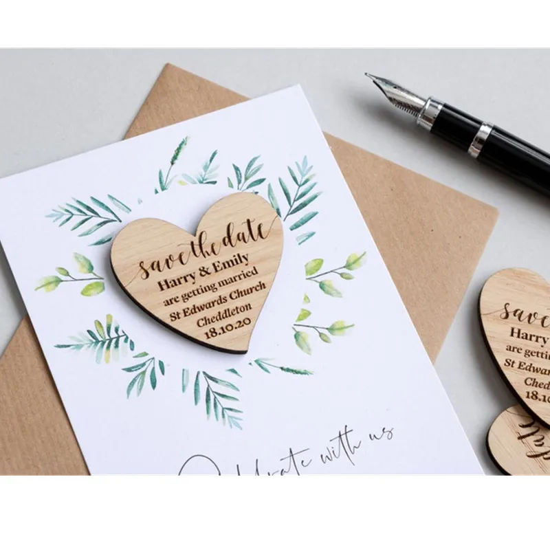 Personalize Names Date Engraved Wooden Card Save The Date Wedding Wedding Invitation Magnets