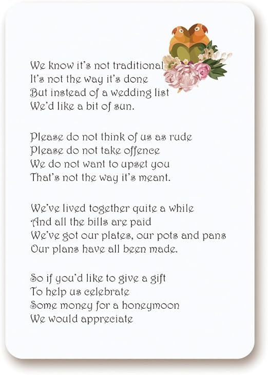 Gift Card Wording Suggestions Wording Examples For Wedding Invitations Wedding Invitation Poems Asking For Money