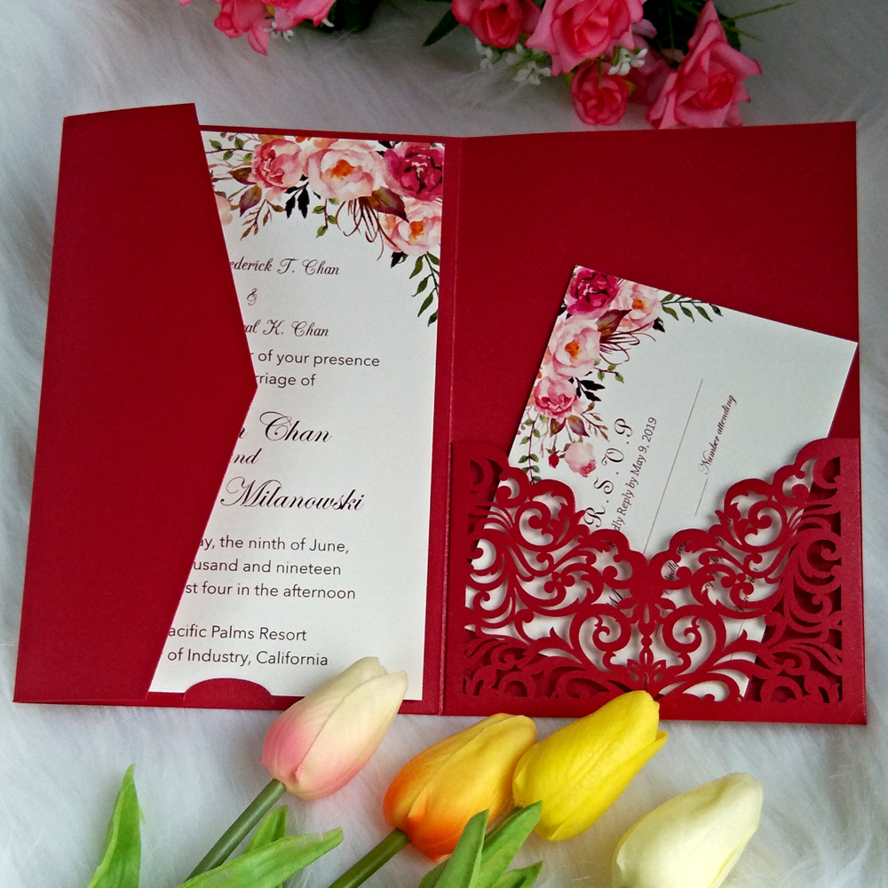 Compare Flesh Pink Wedding Invitations Card Laser Pocket Bridal Wedding Invitation Printing Cheap