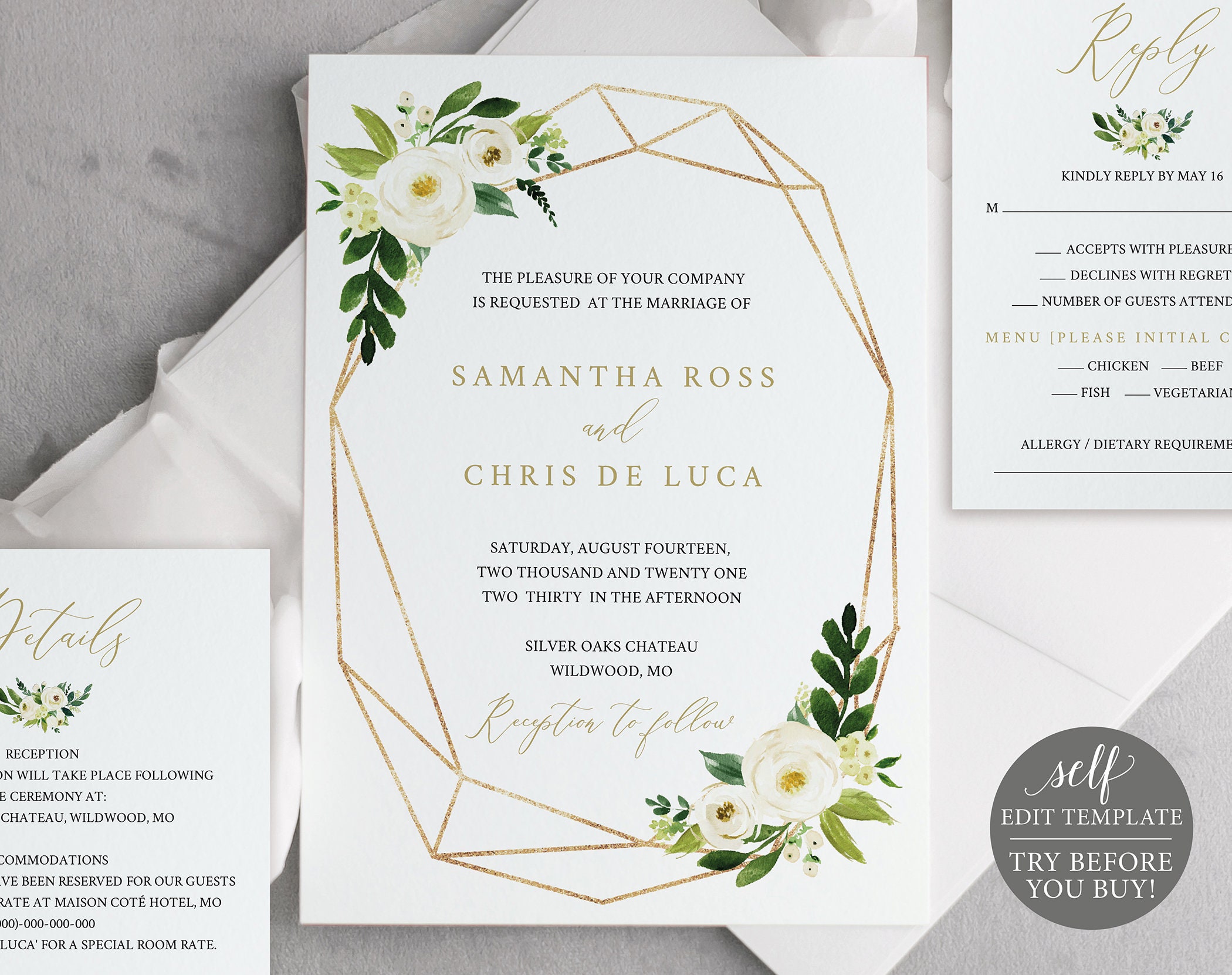 Modern Minimalist Printable Wedding Invitation Set Wedding I Wedding Invitation Set Templates