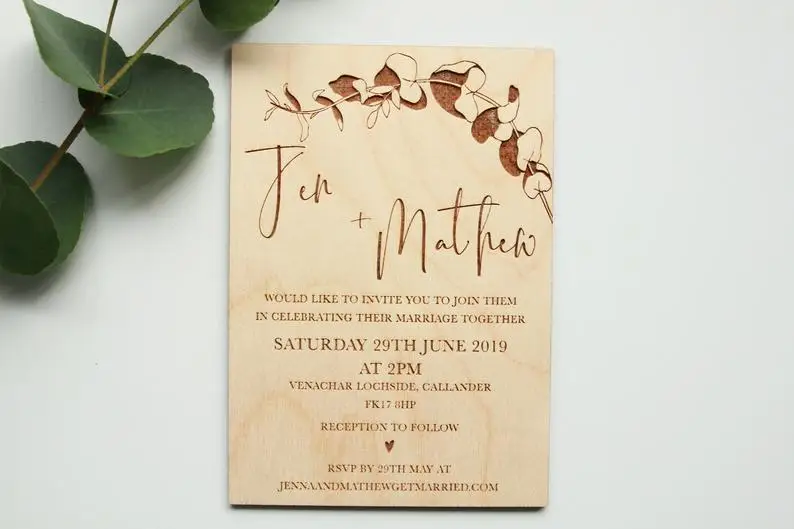 Eucalyptus Wedding Invitation Botanical Wedding Invite Floral Personalised Wedding Invite Simple Wooden Invite Minimal Invit Cards Invitations Aliexpress Wedding Invitation Simple