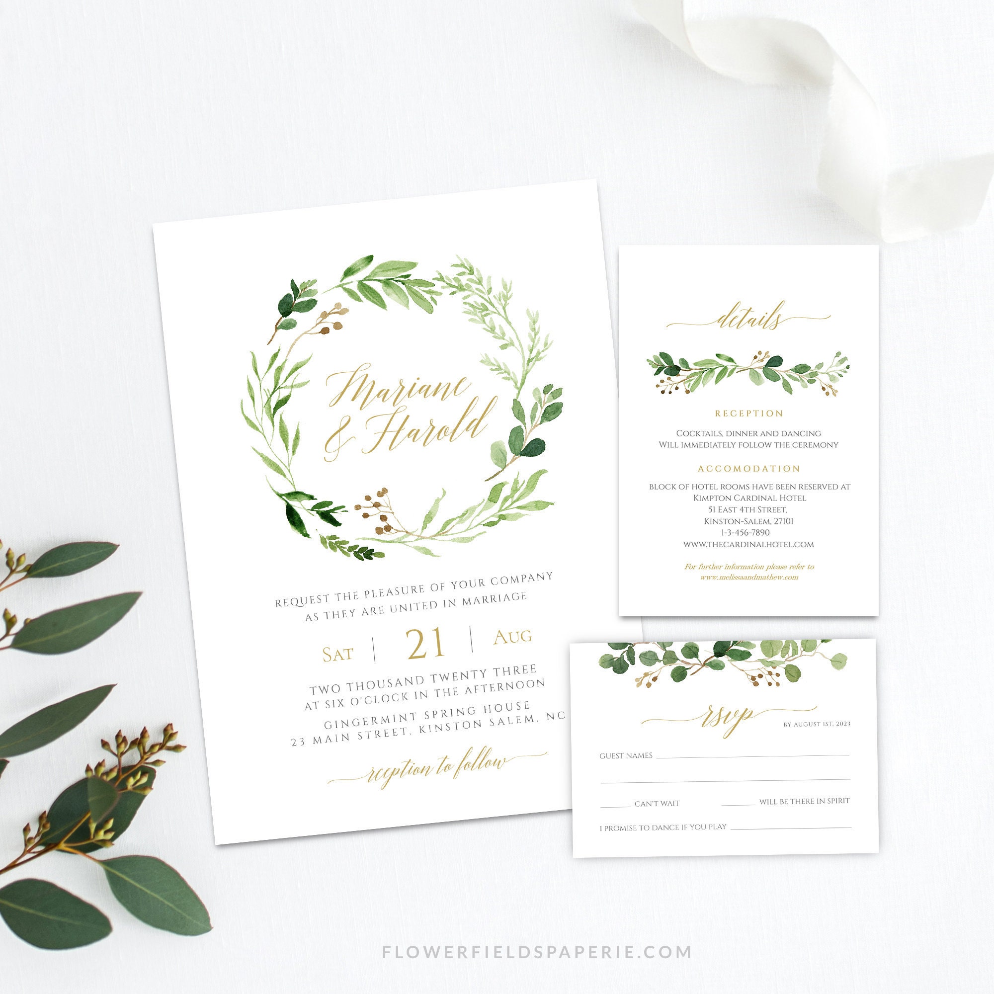 Rustic Greenery Wedding Invitation Suite Template Boho Wedding Wedding Invitation Suite Templates