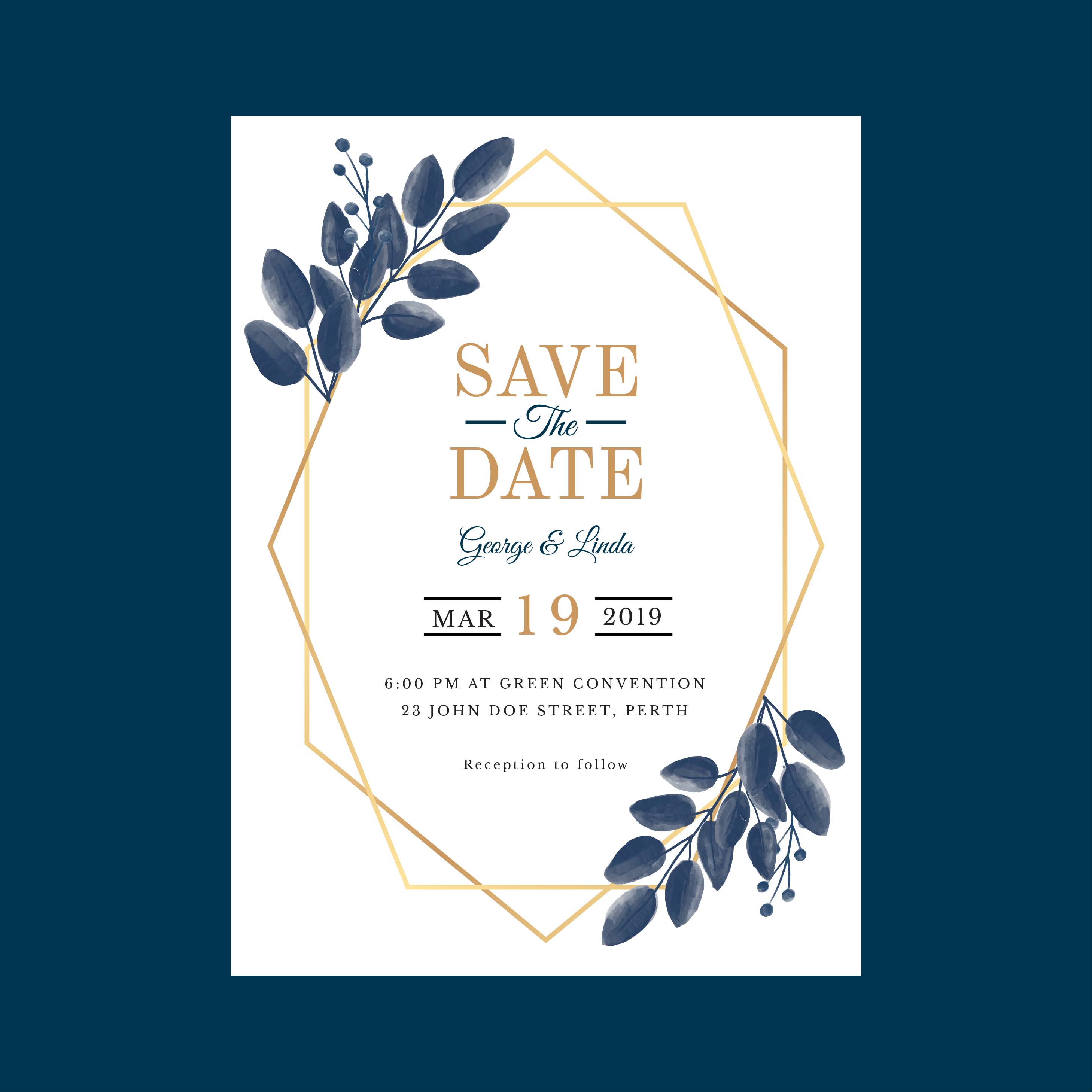 Geometric Watercolor Wedding Invitation Template Vector Download Wedding Invitation Templet