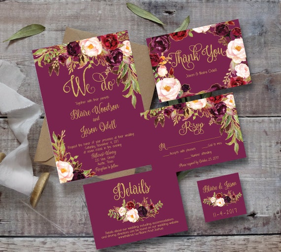 Burgundy Floral Greenery Wedding Invitation Printable Template Wedding Invitations Burgundy
