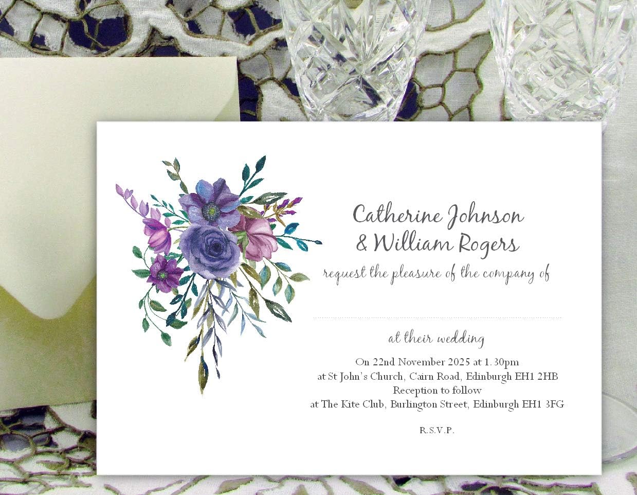 Personalised Wedding Invitations 50 Purple Floral Invites Wedding Invitations Burlington