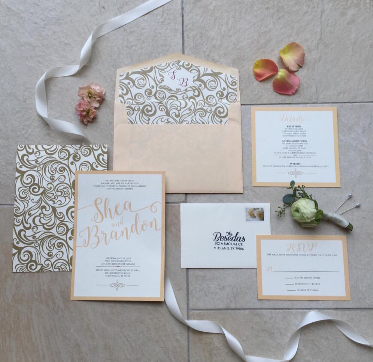 Peach Wedding Invitation Modern Flower Invitations Pink And Mint Wedding Invitations Ct