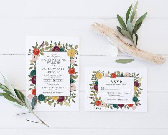 Floral Pop Wedding Invitation Flamboyant Invites Wedding Invitations Floral