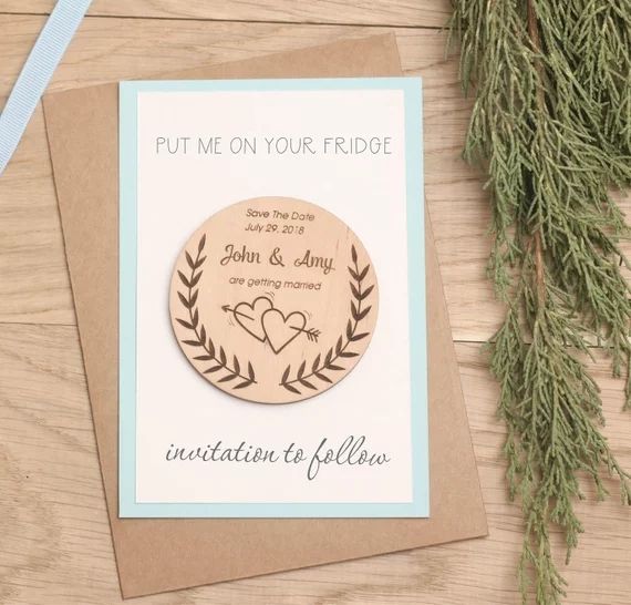 Personalize Names Date Engraved Wooden Card Save The Date Wedding Wedding Invitations Magnet
