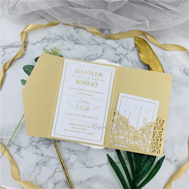 Online Shop Modern Gold Laser Cut Wedding Invitations Cards High Wedding Invitations Personalized Online