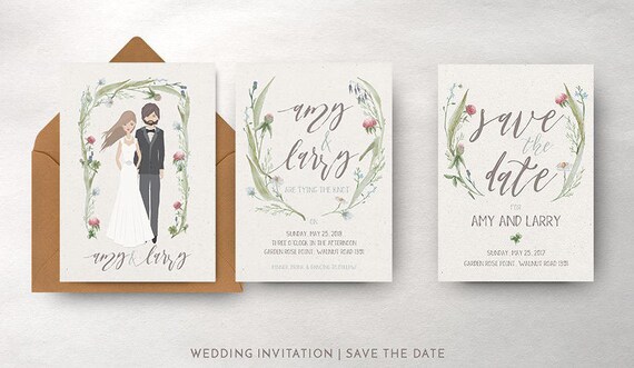 Illustrated Couple Wedding Invitation Couples Portrait Etsy Wedding Invitations Pictures Of The Couple